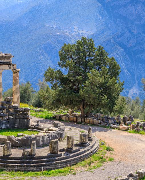 In tollster Landschaft erstreckt sich hier über einen recht steilen Hang eins der bedeutendsten Heiligtümer des Altertums. Es war Apoll, dem Gott der Schönheit und des Lichts, geweiht. Theater, Stadion und Tempel sind in schönste Landschaft zwischen dem fast 2500 m hohen Parnass- Gebirge und dem Korinthischen Golf eingebettet; das Museum von Delphi ist eins der bedeutendsten im ganzen Land. Grundlage für Ruhm und Reichtum Delphis war sein Orakel.