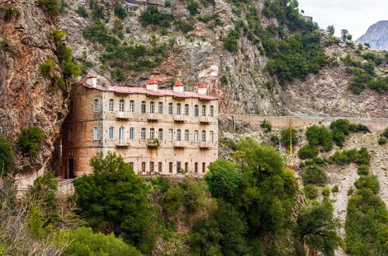 Steht da ein Kloster in Darjeeling? Die Landschaft erinnert stark an die Teeanbaugebiete in Asien, das viel besuchte Wallfahrtskloster Panagía tis Prousiótissas könnte so ähnlich vielleicht auch in Tibet stehen. Es drängt sich dicht an eine Felswand über einem Talkessel, ist teilweise in den Felsen hineingebaut. Nach dem Klosterbesuch rastet man gut auf der Platía des kleinen Dorfs Proússos, von der aus sich ein schöner Blick aufs Kloster und übers ganze Tal bietet.