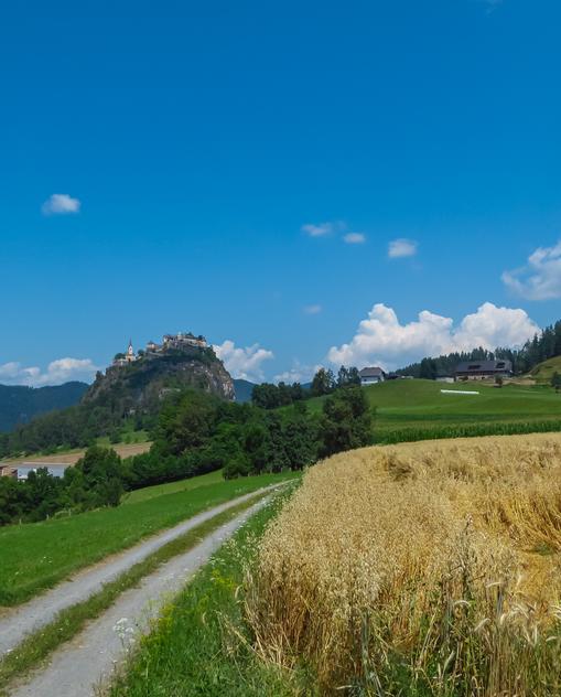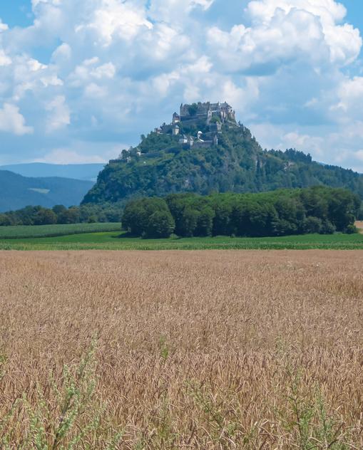Jedes Jahrhundert hat Bauten zurückgelassen, die diese Region neben den landschaftlichen Schönheiten besonders attraktiv machen. Die wohl bekannteste Bilderbuch-Ritterburg Mitteleuropas, Hochosterwitz, kannst du hier ebenso besichtigen wie das bedeutendste romanische Bauwerk Österreichs, den imposanten Dom von Gurk. Die geschichtliche Bedeutung des Raumes nördlich von Klagenfurt kommt nicht von ungefähr: Der Magdalensberg ist der sonnigste Fleck Kärntens, und das Zollfeld sowie das Krappfeld an seinem Fuß sind sehr fruchtbare Landstriche. Statt steiler Berge erwarten dich hier sanfte Hügel, sodass du die Region super mit dem Rad oder E-Bike erkunden kannst. Wandern kann man auch auf den Spuren des traditionellen Vierbergelaufs, einer Wallfahrt über den Magdalensberg.