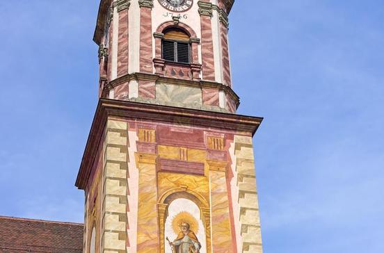Ein kunterbuntes Bilderbuch bäuerlichen Lebens haben Lüftlmaler auf Mittenwalds Hausfassaden und Kirchturm hinterlassen.