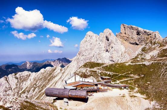 Von der Talstation schwebt die Gondel atemberaubend steil in 2244 m Höhe, wo Karwendelköpfe (2358 m) und Pleisenspitze (2569 m) das Felsrund schroff überragen. Ein leichter Panoramarundweg führt durch die Felslandschaft. Auf keinen Fall verpassen sollte man das Naturinformationszentrum mit seinem Riesenfernrohr: Die begehbare Röhre mit Panoramascheibe am Ende ragt 7 m weit über den 1300 m tiefen Abgrund.