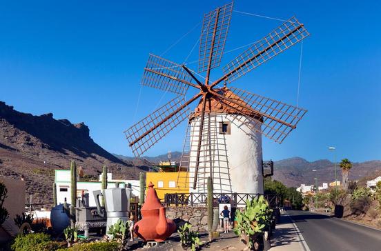 In Molino de Viento, einem "Vorort" an der Straße nach Puerto de Mogán, wurde das verfallene Wahrzeichen wiederhergestellt, das dem Ort seinen Namen gab: Die stattliche Windmühle ist eine der letzten Gran Canarias.