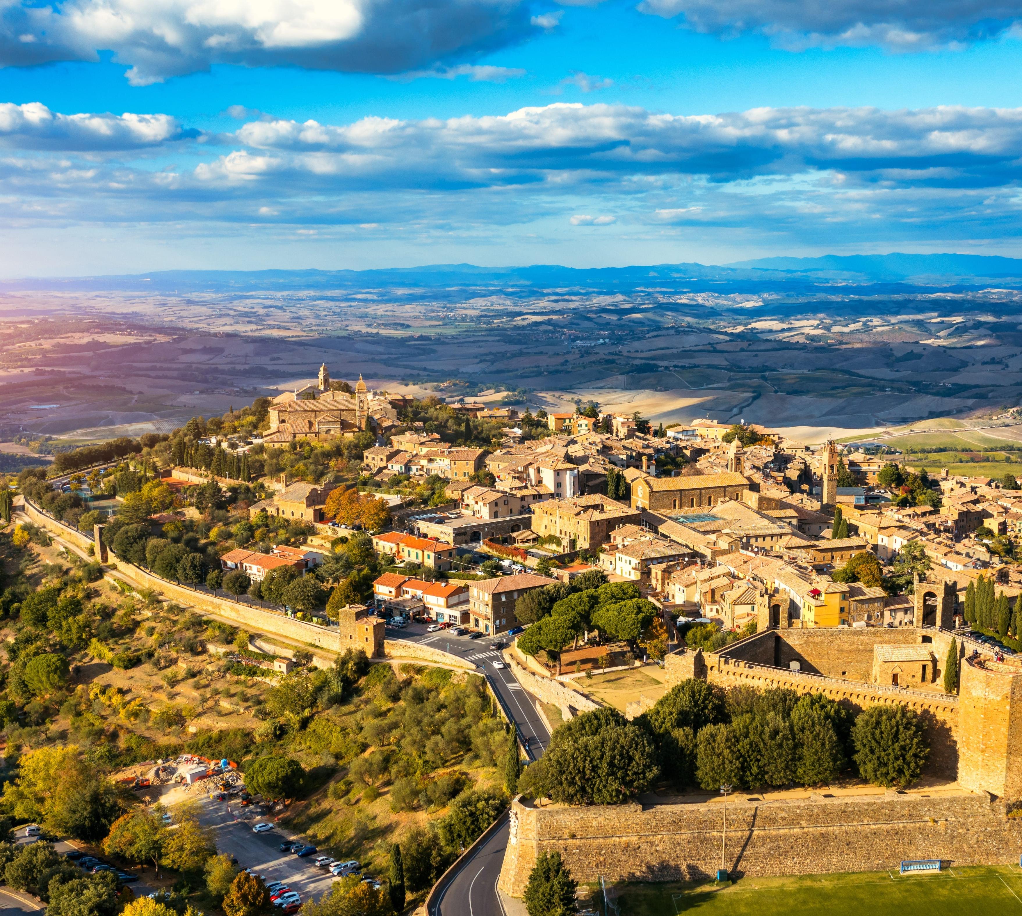 Lange Zeit war der befestigte Ort hoch über dem Orciatal uneinnehmbar. Erst Mediciherzog Cosimo I. gelang es 1560, das letzte Bollwerk der ruhmreichen Stadtrepubliken Italiens einzunehmen. Schmalbrüstig und wappengeschmückt erinnert der Palazzo die Priori an der Piazza del Popolo an die große Vergangenheit. Doch im Grunde kommt man her, um den preisgekrönten Rotwein zu degustieren. Vier Jahre muss er in Eichenfässern lagern, bevor er sich Brunello di Montalcino nennen darf.