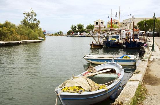 Eine winzige Personenfähre und eine breite Straßenbrücke halten die beiden kleinen Küstenorte Messongí (290 Ew.) und Moraítika (600 Ew.) zusammen. Dazwischen liegt ein schmaler Fluss, den im Sommer das Meer mit Wasser füllt. Kurz vor seiner Mündung sind ein paar Fischer- und Ausflugsboote am Kai von Messongí vertäut – ein idyllischer Anblick.