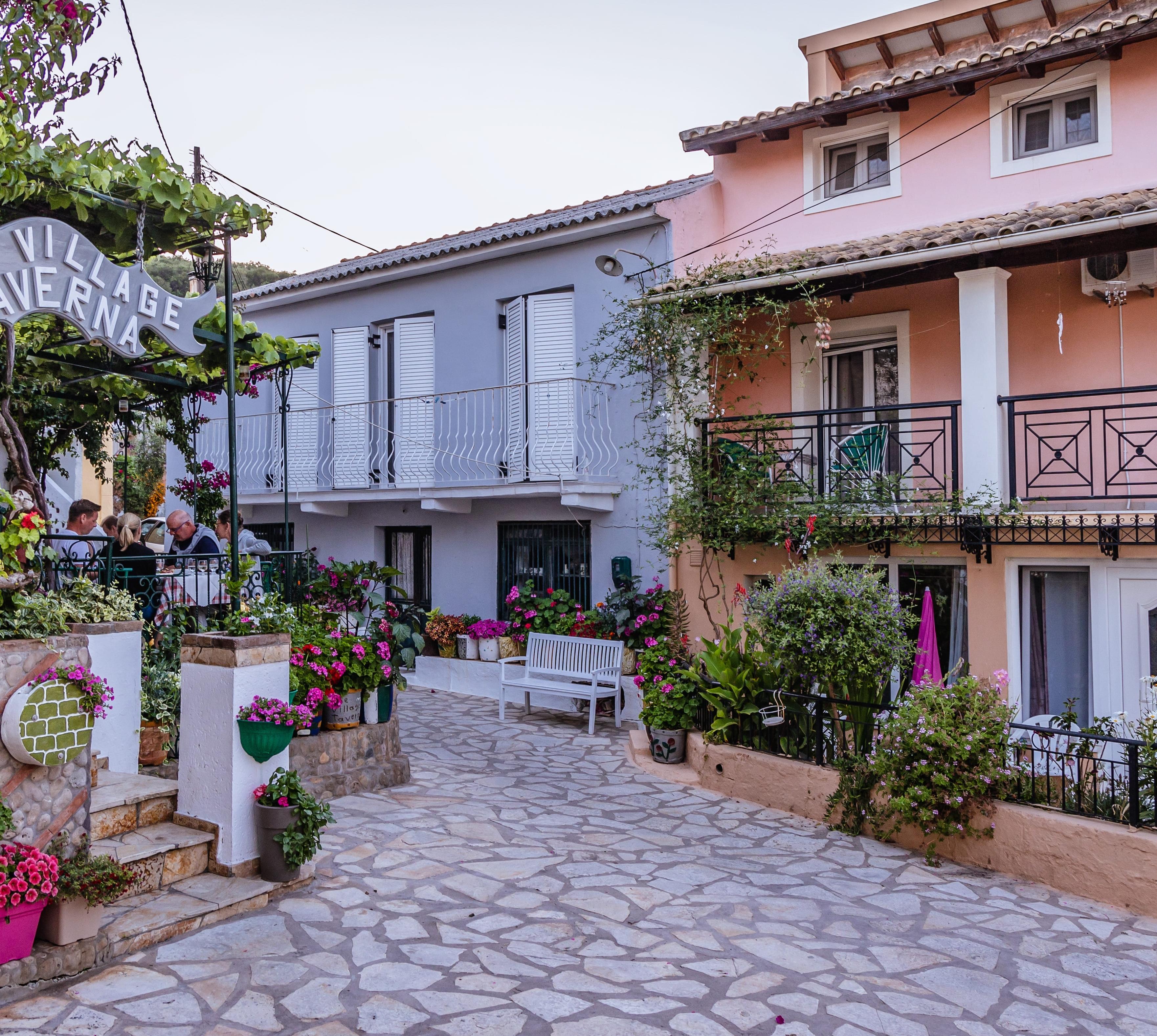 Die Taverne mit blumengeschmückter Terrasse liegt direkt am kleinen Dorfplatz des alten Moraítika. Wirt Níkos erklärt gern und in vielen Sprachen die korfiotischen Gerichte, die seine Frau zubereitet und die meist seine Töchter servieren.