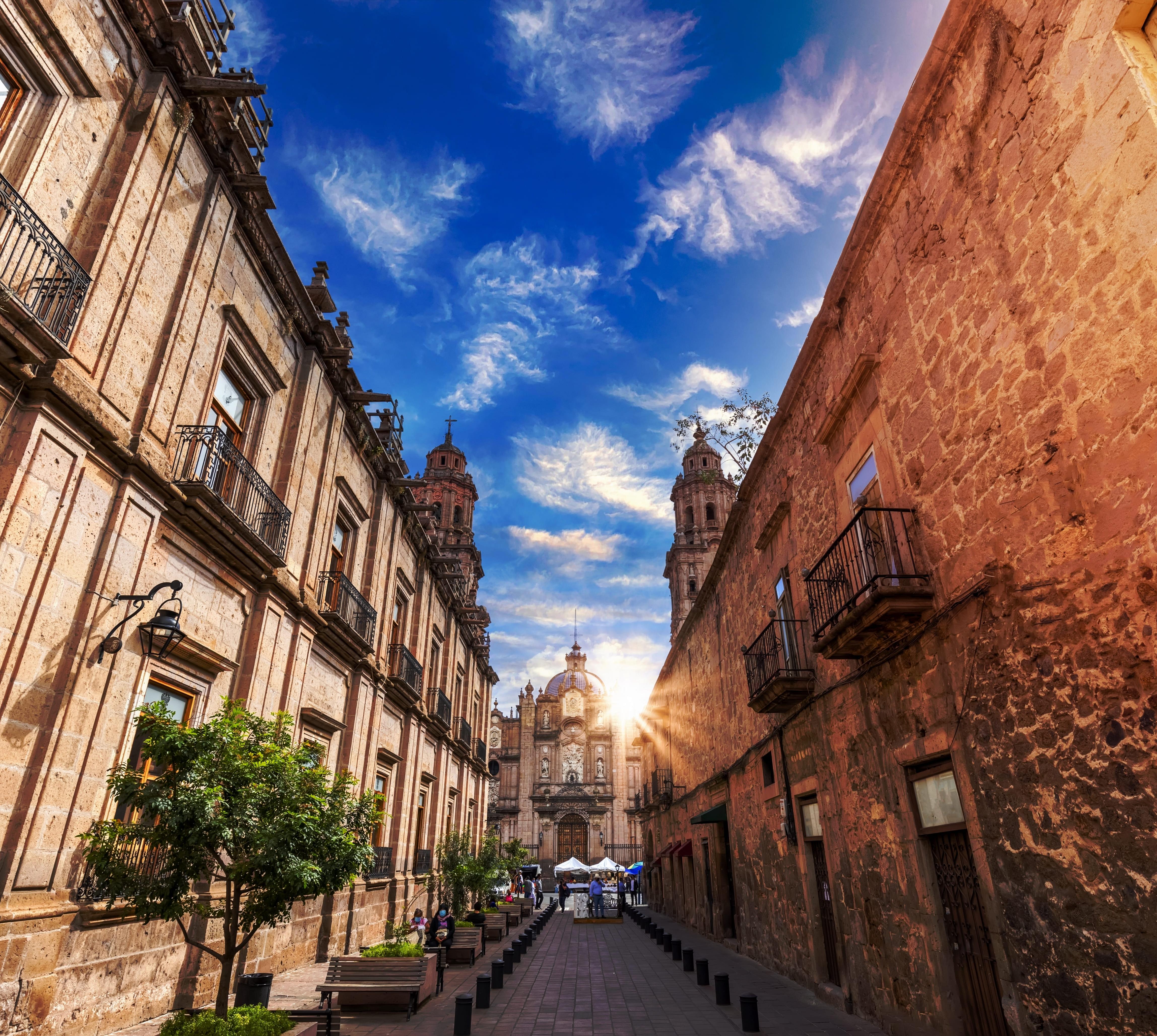 Mexikos „goldenes Dreieck“ bilden die Städte Puebla, Querétaro und Morelia. Unter Denkmalschutz steht die gesamte Altstadt Morelias mit ihren sorgfältig restaurierten Herrenhäusern samt arkadenumkränzten Patios, ihren mächtigen Kirchen und blumenbestandenen plazas. Typisch für die architektonische Gestaltung war die Verwendung von rötlich schimmerndem Sandstein. Morelia ist die Hauptstadt des gebirgigen Bundesstaats Michoacán, einer an altindianischen Traditionen wie an landschaftlichen Schönheiten (Seen und Wälder) reichen Region.