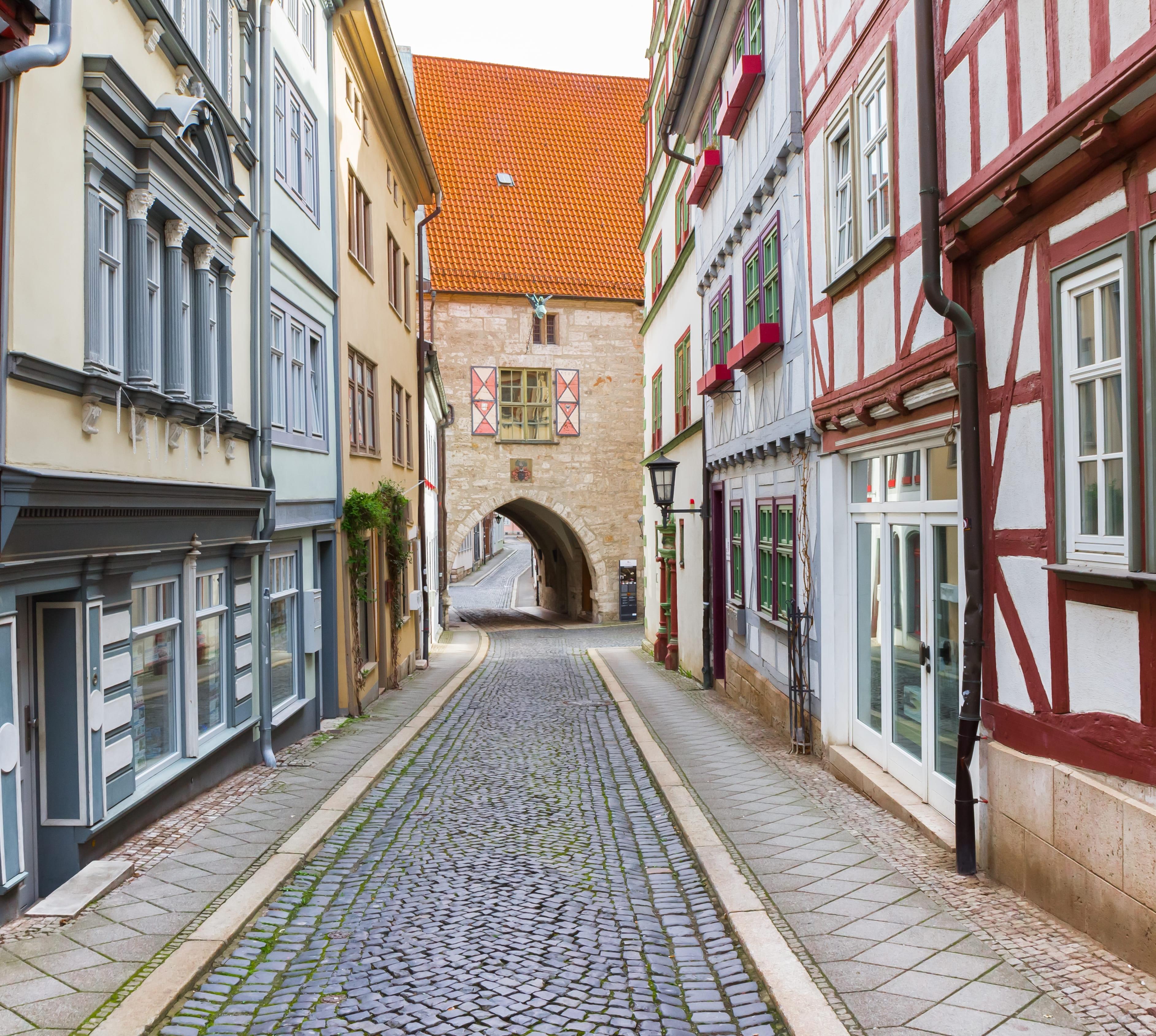 Mühlhausen (38000 Ew.) ist wohl die historisch interessanteste Stadt in Thüringen, da sie ihr mittelalterliches Gepräge weitgehend erhalten konnte. Nahezu 400 Gebäude stehen hier unter Denkmalschutz. Vieles in Mühlhausen erinnert an den deutschen Bauernkrieg 1524/25, dessen bedeutendster Führer, der radikale Reformer Thomas Müntzer, in der Stadt lebte, predigte und vor ihren Toren hingerichtet wurde.