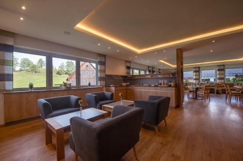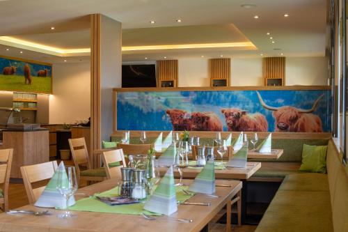 Das Restaurant serviert regionale und saisonale Küche sowie eine große Auswahl an steirischen Weinen. Ein reichhaltiges Frühstücksbuffet wird jeden Morgen serviert.