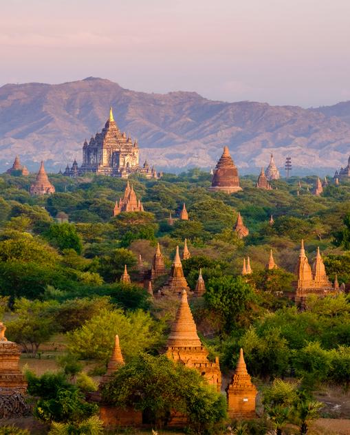 Still schwebt die Dämmerung über der staubigen Ebene. Schemenhafte Umrisse lösen sich aus den Nebelschleiern, unzählige Tempel kommen zum Vorschein: An einem Ort braun-grau, an anderem Ort golden glänzend oder verspielt glitzernd. In dunkelrotes Tuch gehüllte Mönche und in zartem Rosé gekleidete Nonnen beginnen ihren Tag mit dem Einsammeln von Essensgaben, indem sie mit ihren Bettelschalen von Haus zu Haus ziehen und die Menschen Gutes tun lassen. Fast 90 Prozent der 51 Mio. Birmanen sind Buddhisten. Myanmar ist vielleicht das buddhistischste Land der Welt: Die Mönche und Nonnen können sicher sein, mit reich gefüllten Schalen ins Kloster zurückzukehren.