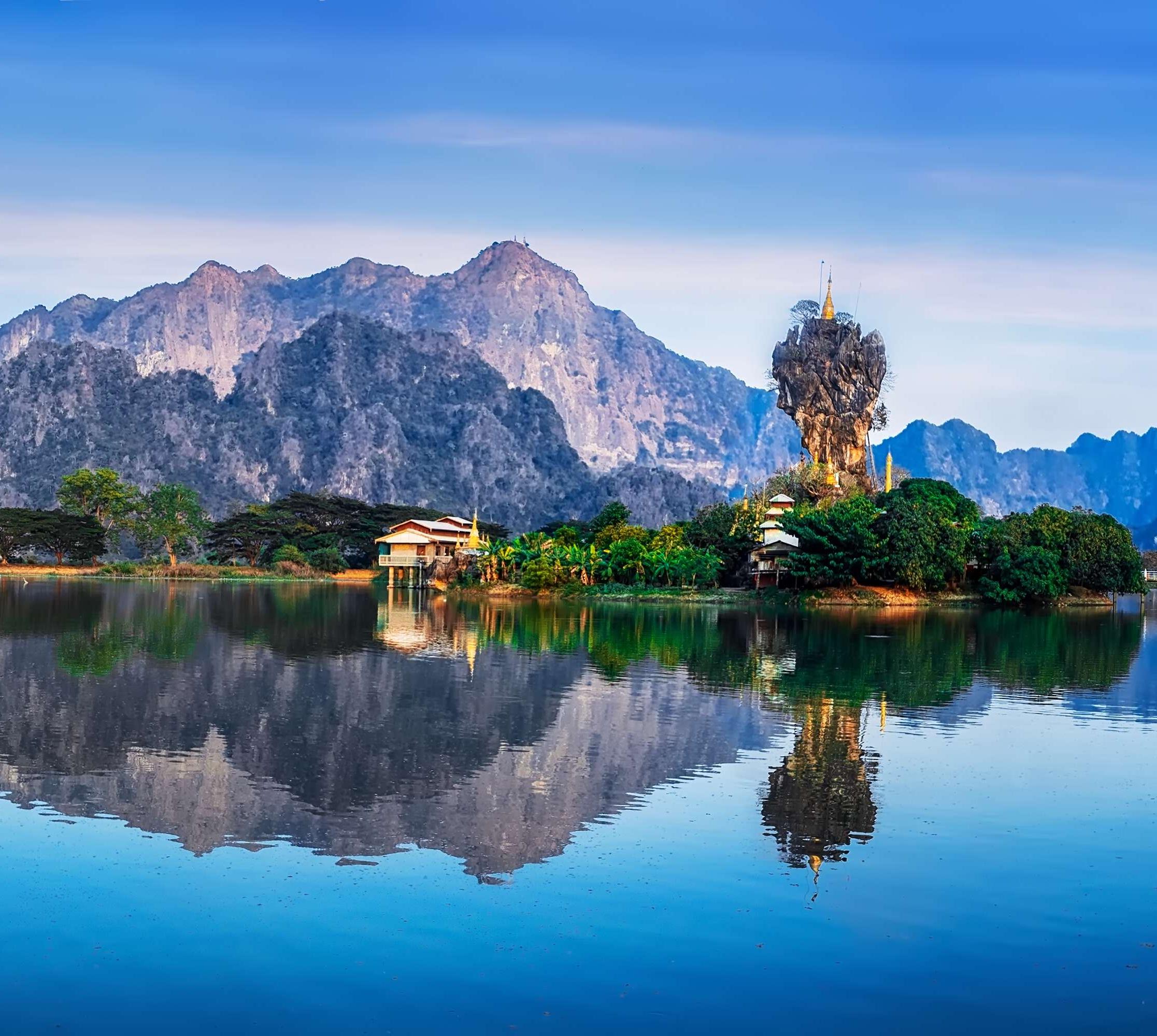 Und es gibt hier viel zu sehen. Schauen Sie sich allein die Ausdehnung Myanmars an: Im Westen grenzt es an Indien, im Osten an Laos. Im Norden grüßen die schneebedeckten Gipfel des Himalaya, und im Süden wiegen sich die Kokospalmen an schneeweißen Sandstränden im Wind. Eine Nation, viele Welten! Ein Land für Entdecker und Abenteuerlustige, aber auch für Genießer: Probieren Sie die einheimische Küche am Straßenstand oder schlemmen Sie im Gourmettempel. Und die passende Unterkunft finden Sie bestimmt: In Erwartung stetig steigender Touristenzahlen entstehen an vielen Orten brandneue Hotels. Wenn Sie auf eine Sentimental Journey gehen wollen und reisen wie die ersten Traveller in den 1990er-Jahren: Die alten Unterkünfte gibt es noch, sie sehen sogar noch genauso aus. Auch hier zeigt sich wieder, was Myanmar so anders macht: Altes bleibt und Neues kommt, und beides koexistiert friedlich.
