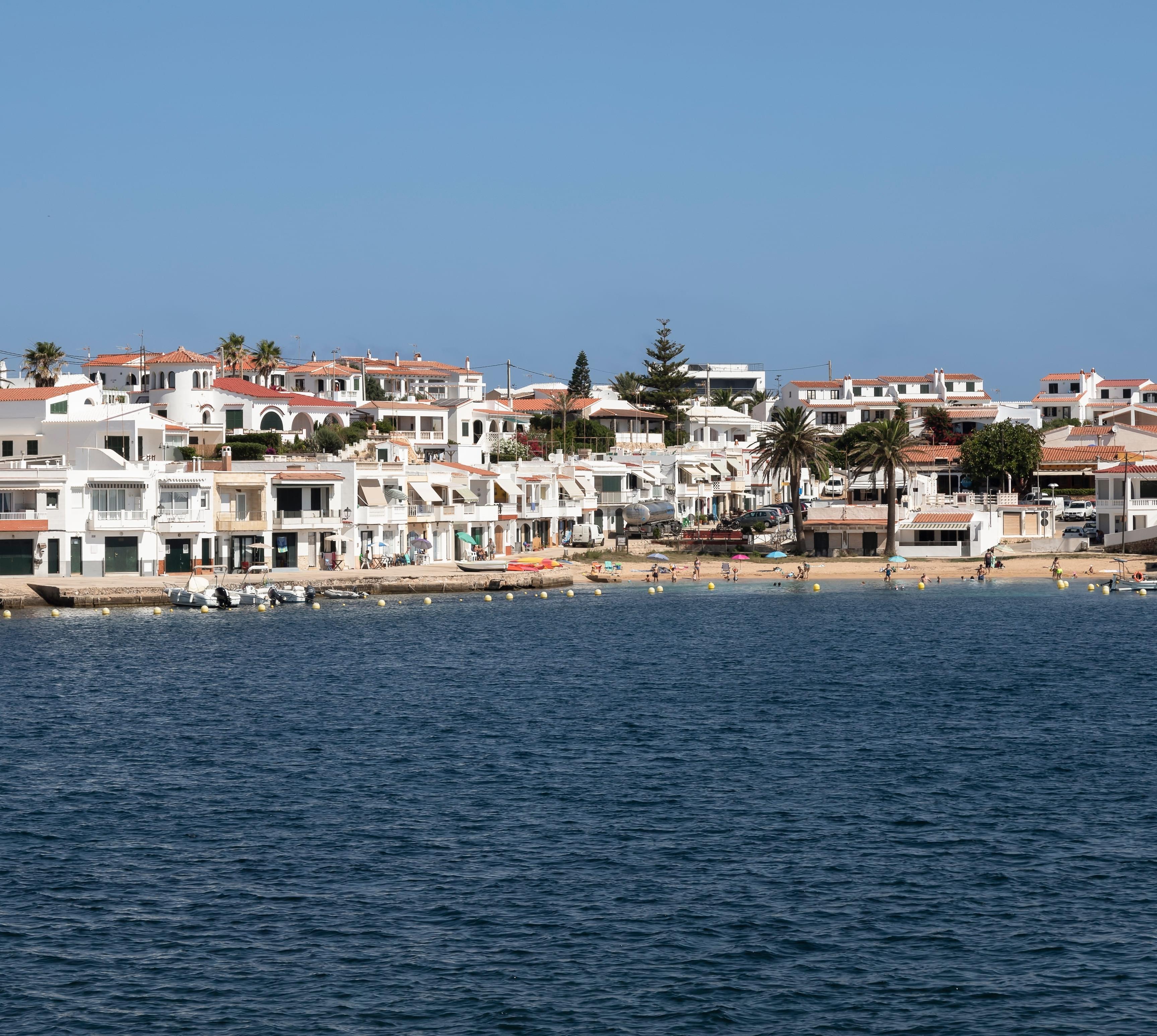 Arenal d'En Castell ist eine moderne Feriensiedlung, deren Strand mit einer Ausdehnung von rund 500 m und einer sanften Neigung in das oft glasklare Meer hinein zu den schönsten der Insel gehört.
