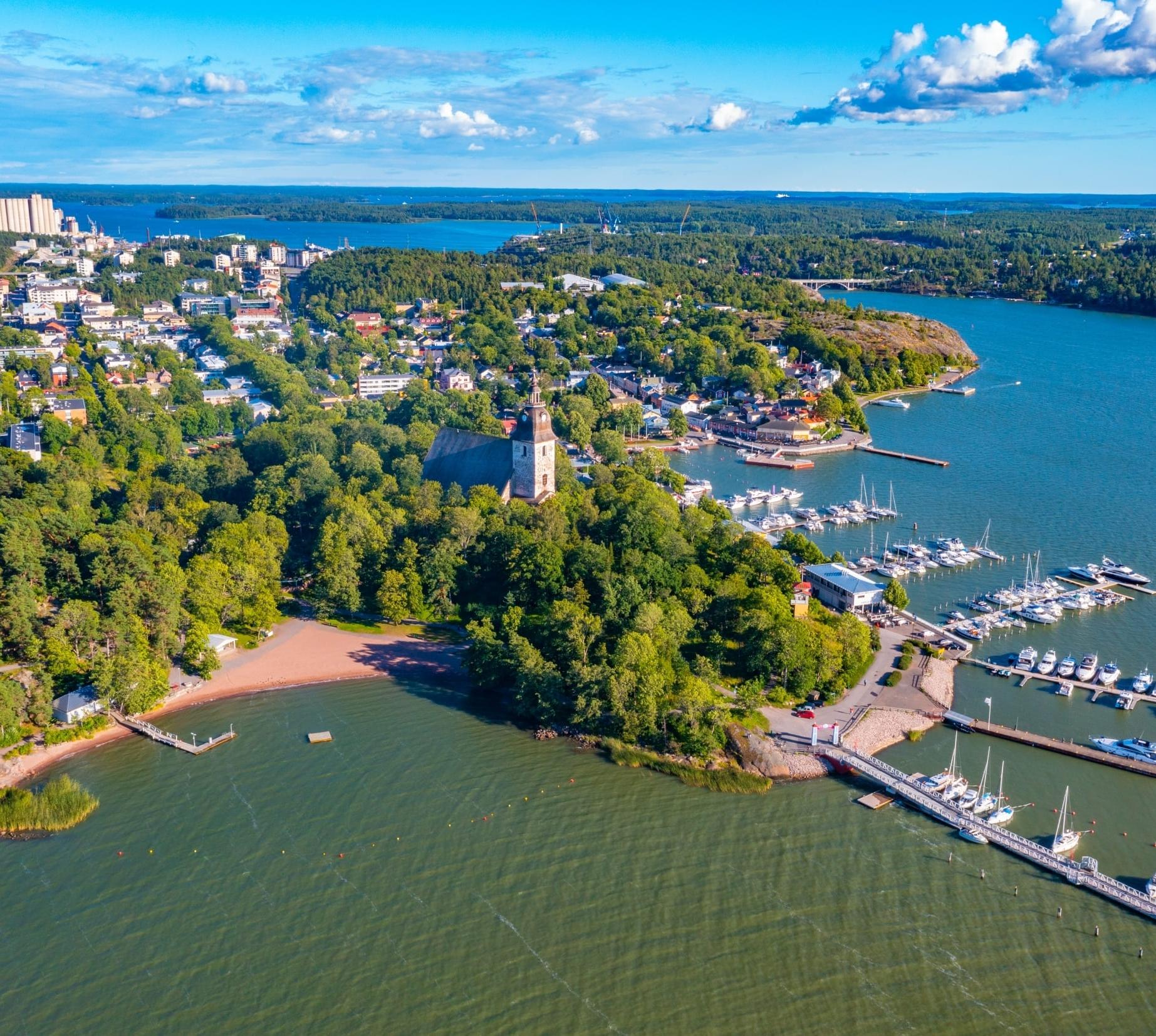 Architektonische HighlightsEin Klein-Versailles des Nordens ist der Park von Kultaranta, in dem im Sommer 3500 Rosenstöcke blühen. Die Sommerresidenz des finnischen Präsidenten liegt auf der Insel Luonnonmaa, eine Brücke vom Festland führt hinüber.