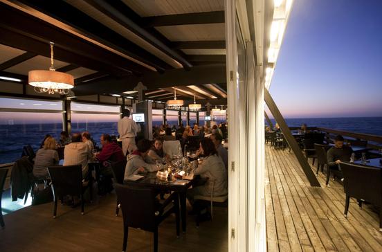 Austern in nahezu allen erdenklichen Variationen, eine wirklich ordentliche Sushi-Bar und auch sonst einige feine Fischgerichte – das moderne Restaurant bietet direkt am Meer genau das, was dort hingehört.