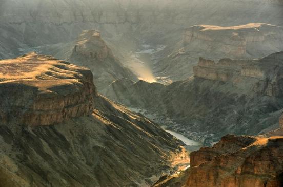 550 m tief schneidet sich der Fluss in die ansonsten eher flache Steppe Südnamibias ein. Mit etwa 160 km Länge und 27 km Breite ist der Fish River Canyon der größte Afrikas und gilt vielen nach dem Grand Canyon in den USA als zweitgrößte Schlucht der Welt.