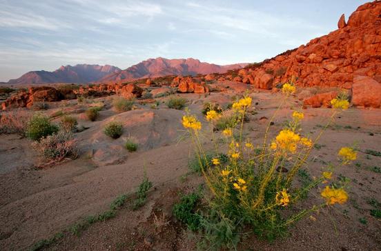 152 km nordöstlich von Swakopmund erhebt sich der markante Berg knapp 700 m aus der Ebene der Namib und 1728 m über den Meeresspiegel. Wenn du bis auf den Gipfel kraxeln willst, brauchst du einen Tag Zeit, keine Kletterausrüstung, aber Fitness und einen lokalen Guide. Einen Führer benötigst du wegen der Zerstörungswut vorheriger Besucher inzwischen auch für die Felsmalereien am Massiv.