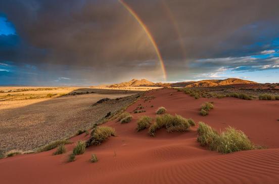 Im Grasland 70 km südöstlich des Sossusvlei liegen mysteriöse vegetationslose Feenkreise, die Wissenschaftlern noch immer Rätsel aufgeben. Strauße tanzen seltsame Pirouetten, um von ihren Jungen abzulenken, während Oryxantilopen gelassen ihres Wegs trotten und Erdwölfe schüchtern, aber neugierig durch das Gras linsen. Vor dem Hintergrund der stahlblauen Berge der Umgebung erscheint das riesige Privatreservat wie ein Kunstwerk, eine stille Galerie der Natur.