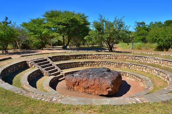 20 km westlich des Städtchens Grootfontein fiel vor rund 80 000 Jahren eines der größten Rätsel des Landes vom Himmel. Der 1920 entdeckte Meteorit ist der weltgrößte und hat die Form eines nahezu perfekten Quaders. Trotz seines Gewichts von 50 t liegt er nur 1,5 m tief im flachen Buschland. Wie der Klotz an seinen jetzigen Platz gekommen ist, bleibt ein Mysterium.