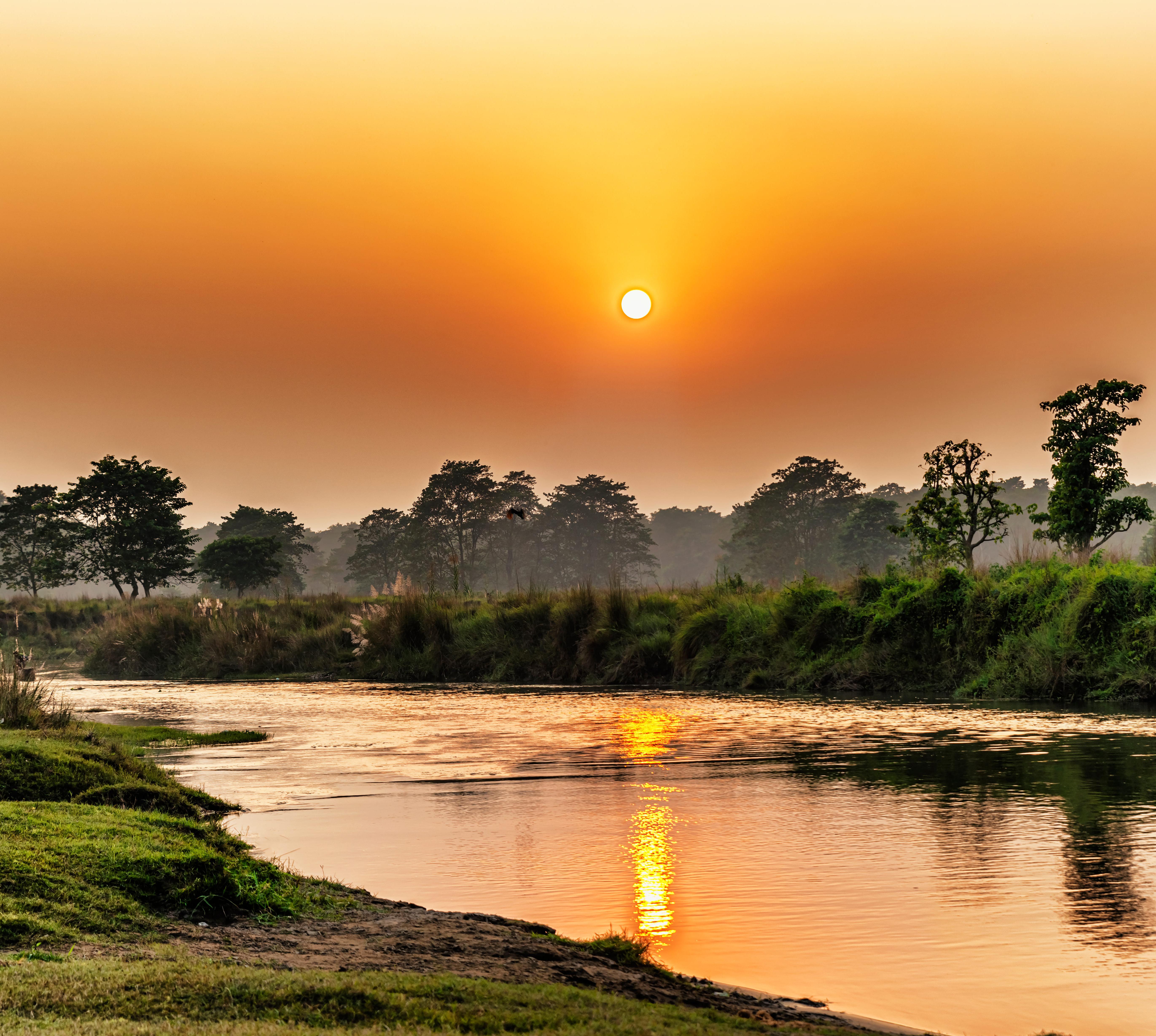 Quizfrage: Du siehst einen Mann im Chitwan National Park im Zickzack über eine Wiese rasen. Warum? Weil er von einem Nashorn verfolgt wird. Und weil ein Rhinozeros (Rhino) nicht gut sehen, aber umso besser riechen kann, ist der Zickzackkurs ratsam, während du dich vor einem Tiger möglichst groß machen und ihm nie den Rücken zuwenden solltest. Theoretisch ist ein Elefantenritt die traditionelle und sicherste Methode, den Chitwan National Park zu besichtigen. Da Elefantenreiten jedoch in letzter Zeit zu Recht kritisch hinterfragt wird, empfiehlt sich eine Kombi aus Bootstour und Wanderung. Aus konservatorischen und Sicherheitsgründen solltest du nur mit einem Führer durch die Natur streifen! Der Park ist mit 1431 km2 riesig und liegt 175 km südwestlich von Kathmandu. Was gibt es zu sehen? Neben den vom Aussterben bedrohten Panzernashörnern, Tigern und Leoparden leben hier 35 Arten von Säugetieren, darunter Lippenbären, Rhesus- und Langurenaffen, Wildschweine, wilde Büffel (Gaur), Rotwild, außerdem die seltenen Gavial-Krokodile sowie Termiten, Schlangen, Schmetterlinge, 450 Vogelarten und Pfauen, die hier ihre Urheimat haben. Im Narayani-Fluss tummelt sich der seltene Süßwasserdelfin. Die beste Zeit für die Tierbeobachtung ist im Mai und Juni, allerdings musst du dann auch feuchte Hitze und Gewitterstürme in Kauf nehmen. Im Winter ist das Klima mit durchschnittlich 20 Grad am angenehmsten, nachts kann es jedoch zuweilen recht frisch werden. Chitwan war früher ein Geheimtipp unter Großwildjägern. Die Besiedelung des Terai führte in den 1950er-Jahren zu einem drastischen Rückgang von Tier und Wald. Doch einige ökologische Nischen konnten erhalten werden, darunter der Nationalpark – zum Verdruss vieler Dorfbewohner, denen wichtiger Lebensraum entzogen wurde: Der Zugang zu den Früchten des Waldes, zu Brennholz und einer bestimmten Grassorte, die sie für ihre Hausdächer brauchen, wird ihnen verwehrt, dafür dürfen Fremde, die Touristen, hinein. Zusätzlich frisst das nun geschützte Wild die Feldfrüchte. Um den Konflikt zu entschärfen, ist es den Anwohnern einmal pro Jahr erlaubt, im Park Gras zu schneiden. Du kannst das Naturreservat per Flugzeug, Auto, Bus, Fahrrad oder/und Schlauchboot (Raft) erreichen. Ein Pauschalarrangement (Übernachtung, Vollpension, Parkgebühren, Touren und lokaler Transport) ist meist der bessere Deal, da die Anreise kompliziert ist, und die Pakete zusätzlich geführte Wanderungen, Kanu- und Jeeptouren sowie Aufführungen von Volkstänzen beinhalten. Sie sind meist flexibel gestaltet und kosten nicht viel mehr als ein Individualarrangement. Übernachtungsmöglichkeit gibt es im idyllisch am Parkrand gelegenen Dorf Sauraha, das sich in den letzten Jahren zu einer für nepalesische Verhältnisse recht hippen Partydestination entwickelt hat. In den Bars am Flussufer des Narayani läuft gedämpft Ambience und Trance, während es kühle Drinks zum meist spektakulären Sonnenuntergang gibt. Nach 21 Uhr übernimmt aber auch hier der Dschungel und es chillen nur noch die Tiere.
