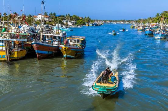 Es riecht, es ist matschig und es ist laut – wie halt ein richtiger Fischmarkt in Sri Lanka sein muss. Und jener von Negombo zählt zu den größten und interessantesten. Von frühmorgens bis gegen 11 Uhr herrscht buntes Treiben. Die Meerestiere sind nach Größe sortiert – bis Hai und Tuna ist alles dabei. Viele der Fischer sind noch mit den traditionellen Auslegerbooten, oruwas, unterwegs, die mit ihren braunen Segeln ebenfalls eine Augenweide für Fotografen sind.
