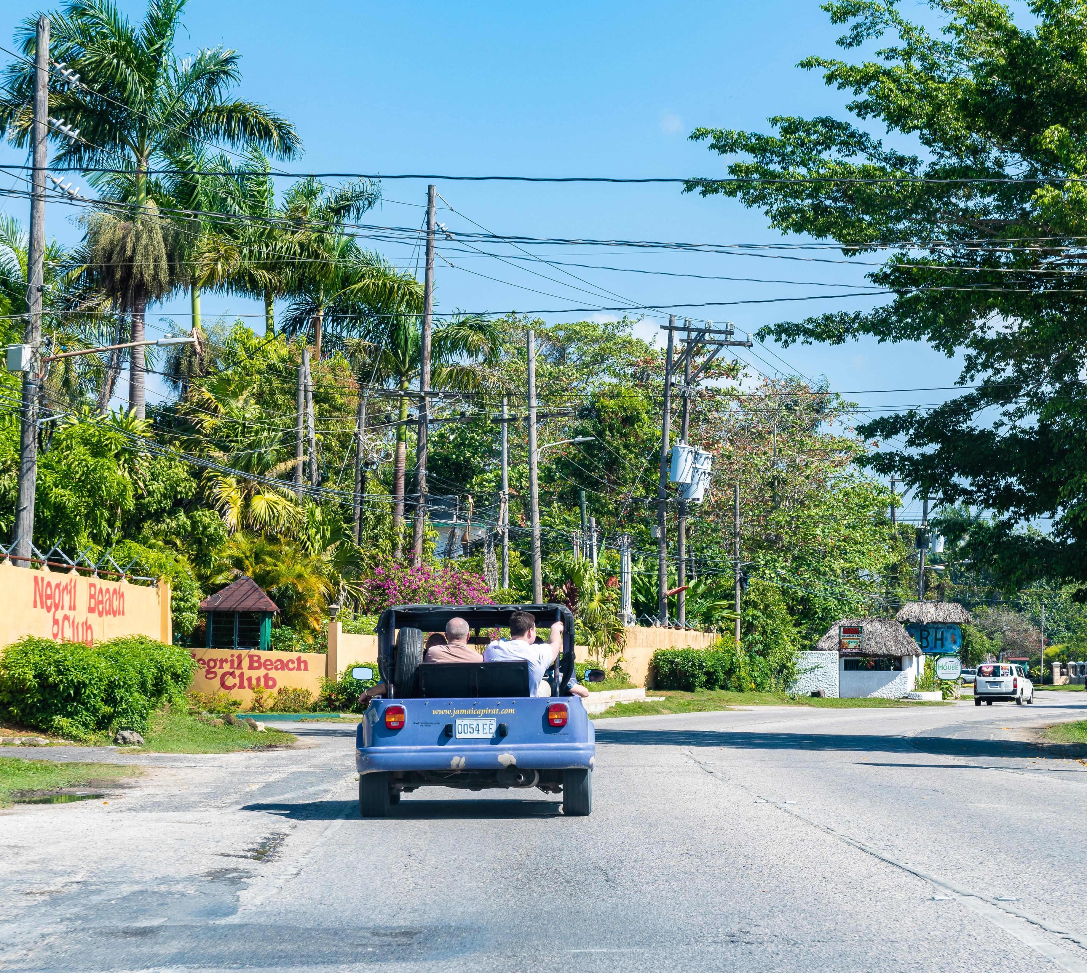 Parallel zum Strand verläuft die Hauptstraße und Lebensader von Negril, der Norman Manley Boulevard, gesäumt von unzähligen Souvenirständen, Fahrrad-, Moped- oder Motorradverleihen. Der Boulevard endet am Kreisverkehr. Hier, im Mittelpunkt von Negril City, gibt es ein Einkaufszentrum mit verschiedenen Läden und eine Wechselstube. Ungefähr auf gleicher Höhe endet auch der Strand. Klippen erheben sich über kleinen, felsigen Buchten, in denen das Wasser in allen Blauschattierungen schimmert. Die West End Road schlängelt sich um die Klippen und windet sich um den Leuchtturm. Zwischen Straße und Kliffkante finden sich in idyllischer Lage kleine Pensionen, Privatunterkünfte und Boutiquehotels.
