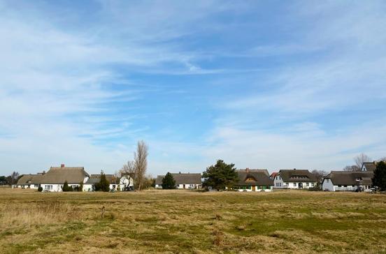 Tatsächlich, hier ist es noch (!) ruhiger als sonst schon auf Hiddensee. Die Häuser stehen über die Wiese verstreut, ohne Zäune oder Hecken. Weiter südlich kommt nur noch die Landzunge Gellen – bis zum Leuchtfeuer darf man wandern, kurz dahinter ist Naturschutzgebiet.