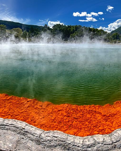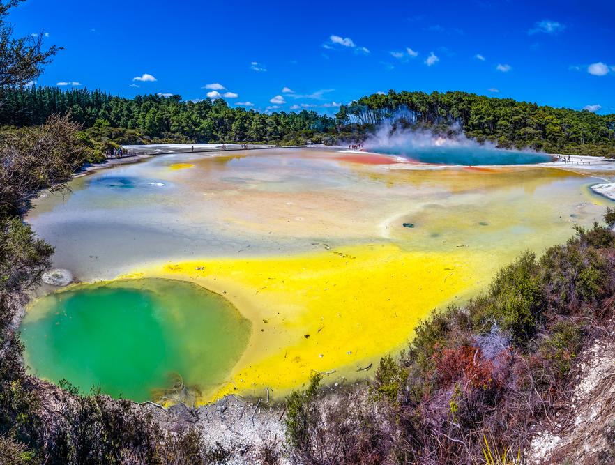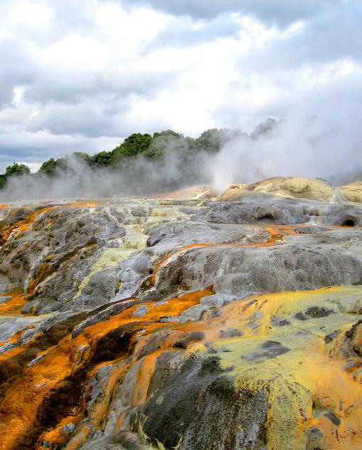 Neuseeland ist ein geologischer Newbie, eins der jüngsten Länder der Erde. Es hat sich erst vor 80–100 Mio. Jahren vom Superkontinent Gondwana abgespalten. Seine Jugend beschert ihm eins der aktivsten Vulkanfelder der Welt. Es rappelt und rumpelt an diversen Ecken, und Mini-Erdbeben sind an der Tagesordnung. Die Thermalgebiete rund um Rotorua auf der Nordinsel sind durchaus in der Lage, dir den Atem zu nehmen – und nicht nur, weil es dort so stinkt.