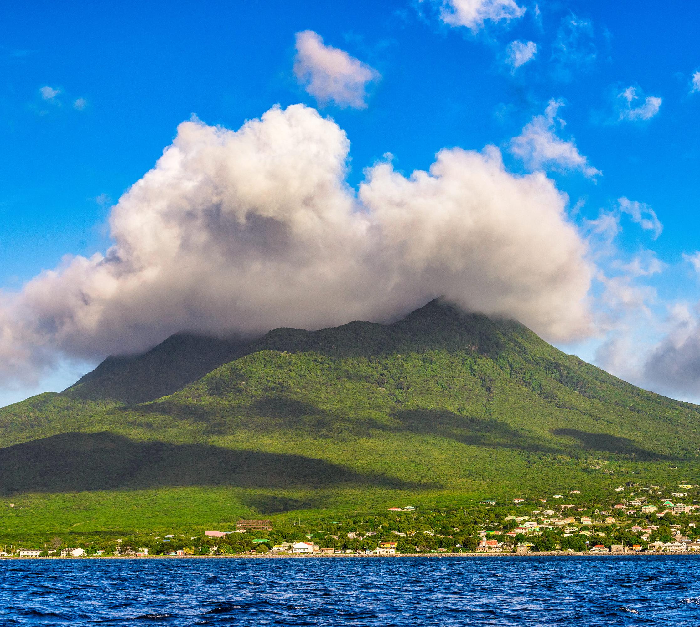 Es gibt kaum einen Tag, an dem der fast 1000 m hohe Nevis Peak nicht sein Haupt verhüllt. Ihm hat die Insel ihren Namen zu verdanken, denn als Kolumbus den Berg 1493 erblickte, da dachte er an Schnee und nannte die Insel deshalb Nuestra Señora de las Nieves – „Unsere Herrin des Schnees”.