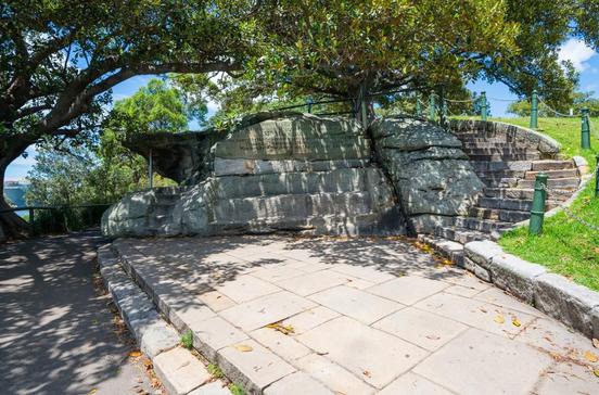 Von diesem in den Fels gehauenen Sitz sah sich die Frau des Gouverneurs Macquarie das Treiben im Hafen von Sydney an.