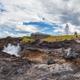 Dieses Blowhole, das wahrscheinlich größte der Welt, ist die besondere Attraktion von Kiama. Bei Südwestwind türmen sich die Wellen vor den Felsen auf, rasen in eine tiefe Seehöhle und steigen in einer bis zu 60 m hohen Fontäne durch das Loch im Fels empor.