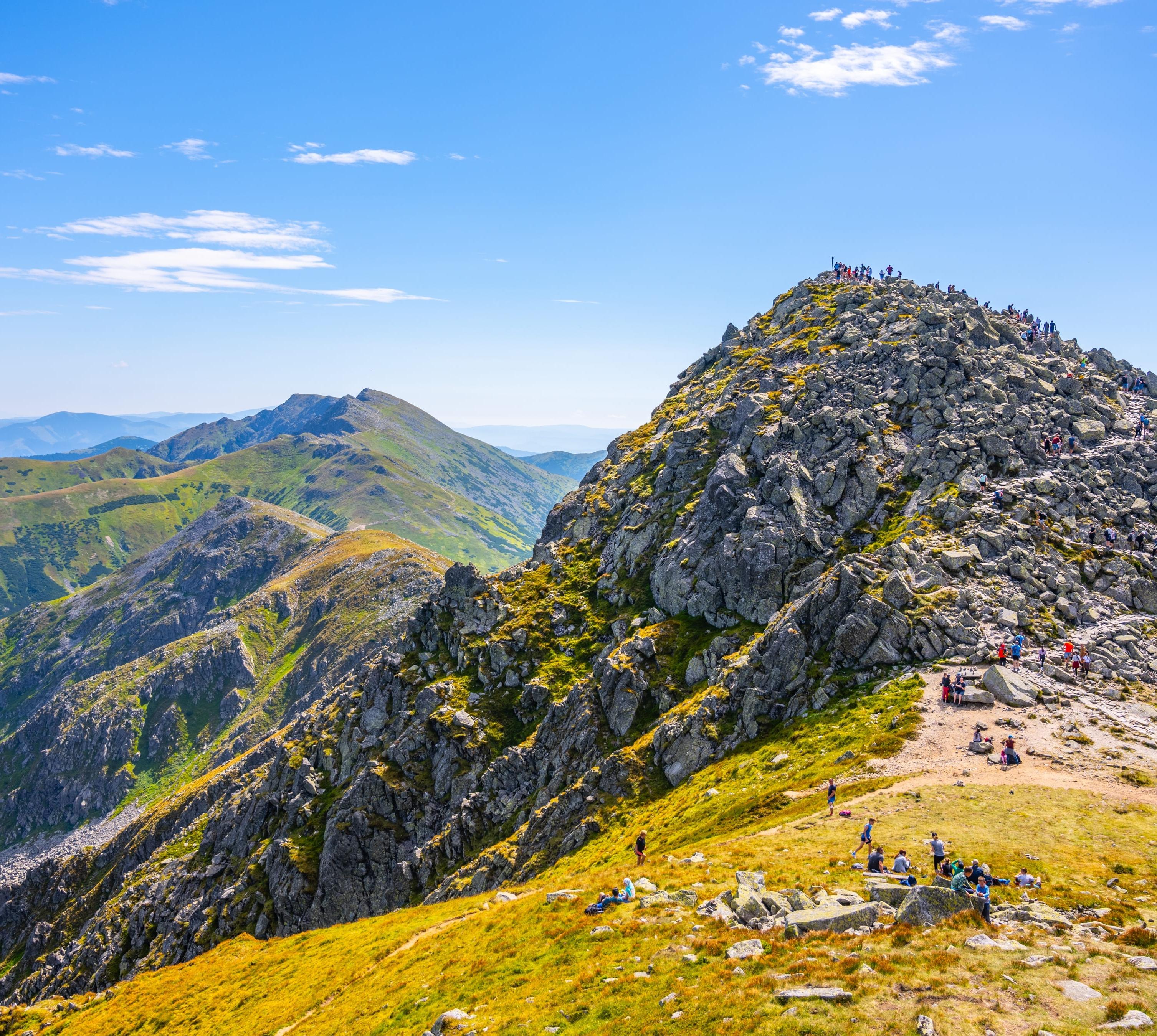 Die höchsten Gipfel sind Ďumbier (2043 m) und Chopok (2024 m). Der Hauptkamm ist 95 km lang und bildet eine Barriere zur Mitte des Landes. Das Besondere daran: Er ist von beiden Seiten begehbar. Die Wanderungen am Grat entlang bieten unvergessliche Ausblicke sowohl zur Hohen Tatra als auch ins mittelslowakische Erzgebirge.