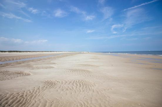 Imposante 15 km kann mann spazieren gehen, um die ganze Länge des hinter einem Dünengürtel gelegenen Strandes zu erleben. Nur am bewachten Hauptbadestrand nördlich des Ortskerns gibt es Strandkörbe und Sportangebote, der Rest ist Natur pur.