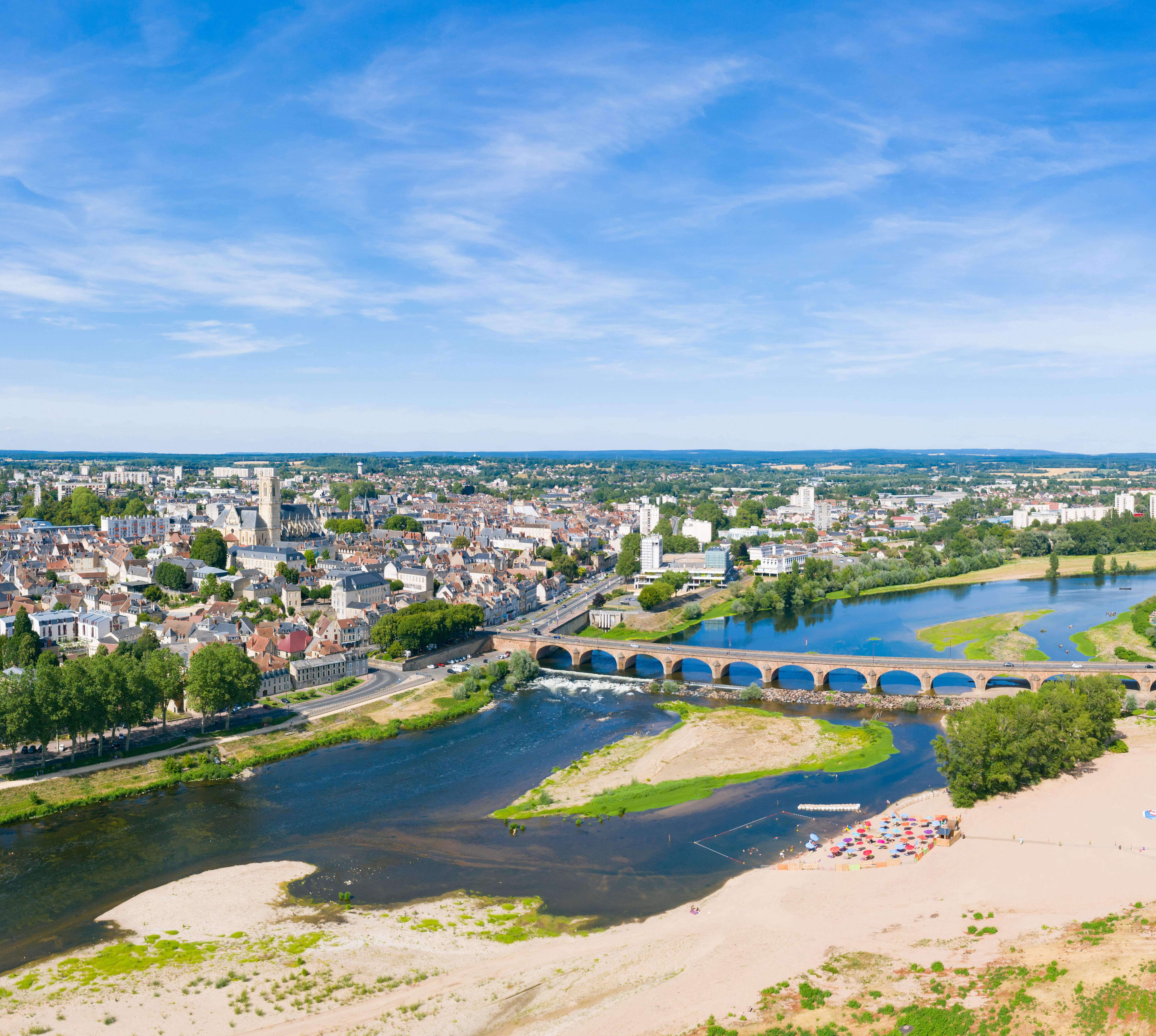 Den schönsten Blick auf die ehemalige Bischofsstadt hat man von der anderen Seite der Loire aus. Die Altstadt thront auf einem Hügel über dem Fluss und schon von Weitem ist die Kathedrale Saint-Cyr-Sainte-Juliette mit ihrem über 50 m hohen Turm zu sehen. An der Kirche wurde jahrhundertelang gebaut. Vor allem Romanik und Gotik haben ihre Spuren hinterlassen. Die bunten Glasfenster sind modern, sie ersetzten die 1944 zerstörten Fenster. Eine weitere Sehenswürdigkeit ist das Palais Ducal. Der Palast aus dem Jahr 1460 war einst die Residenz der Grafen und Herzöge und ist heute ein beliebter Veranstaltungsort.