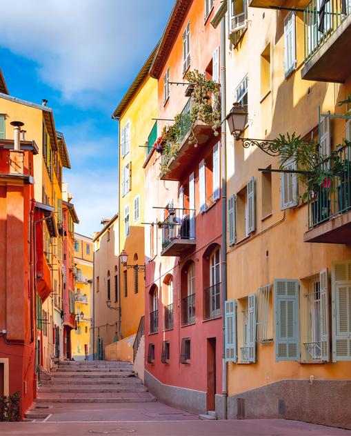 Nizza ist bunt wie ein Regenbogen: blau die Bucht, rot die Dächer, ockergelb die Häuser und kunterbunt die Märkte. Das mediterrane Licht lässt die Farben intensiver leuchten als anderswo – und das an über 300 Sonnentagen im Jahr. Marktbesuche, Wellenrauschen auf den Kieseln, laue Abende in den Altstadtbars – in Nizza schwebt man durch den Tag.