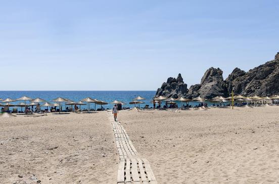 Psilí Ámmos Ost ist besonders kinderfreundlich flach abfallend.