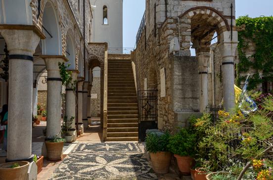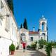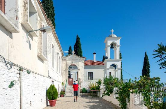 Der weiße Bau dieses Klosters am Stadtberg oberhalb von Pythagório fällt auf. Die Höhlenkirche des Klosters lohnt einen Besuch.