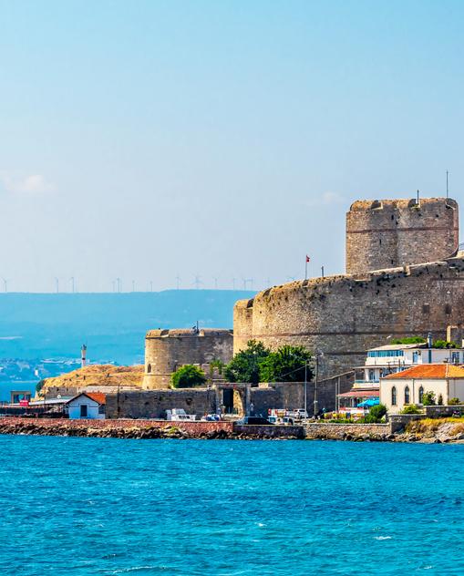 Die alte Festung am Hafen ist auf drei Seiten von Wasser umgeben und hat an der Südfront einen ca. 10 m breiten Graben, der einst auch mit Wasser gefüllt war. Sie wurde von Phöniziern erbaut, von Genuesen und Venezianern erweitert, von den Osmanen übernommen und zuletzt 1996 restauriert. Sie beherbergt eine ethnografische Sammlung. Die Sicht von der Festung auf die Insel Bozcaada lohnt sich.