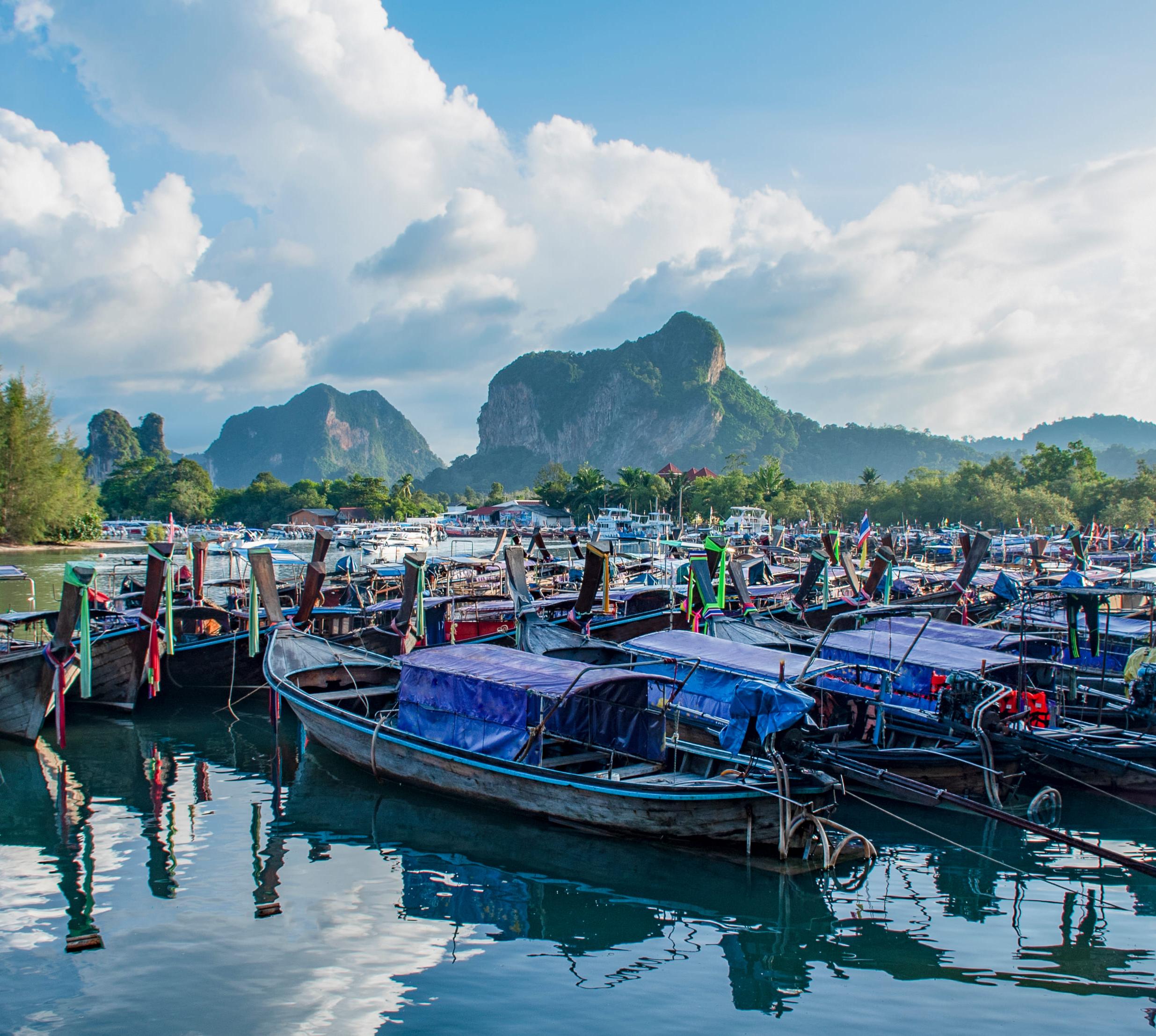 Zu den schönsten Stränden der Provinz Krabi gehört der Rai Leh Beach, auch Railay Beach genannt. Dieser liegt in malerischer Kulisse zwischen riesigen Kalksteinfelsen.