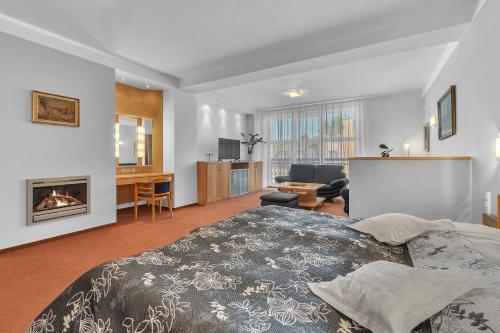 Jedes Zimmer im Alpina Lodge Hotel Oberwiesenthal verfügt über einen Flachbild-TV, einen Schreibtisch und eine Minibar. Im eigenen Bad finden Sie eine Badewanne oder eine Dusche, einen Haartrockner sowie kostenlose Pflegeprodukte vor.