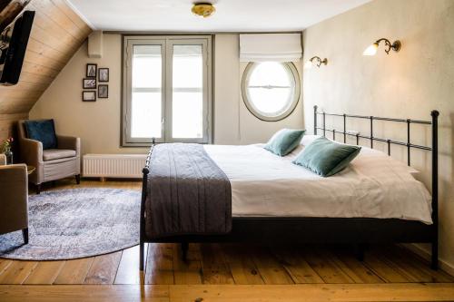 The hotel rooms are nicely decorated and have a bath, comfortable beds, and a flat-screen TV. Most of the rooms have a view of The Heuvel square.