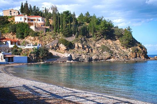 Die westlichste der schönen Strandbuchten der Nordküste zwischen Kokkári und Karlóvassi wird weit weniger besucht als die Kokkári näher gelegenen Strände, obwohl sie jenen sehr ähnelt. Zur Taverne am Strand führt ein Weg hinunter, der auch mit PKW befahren werden kann.