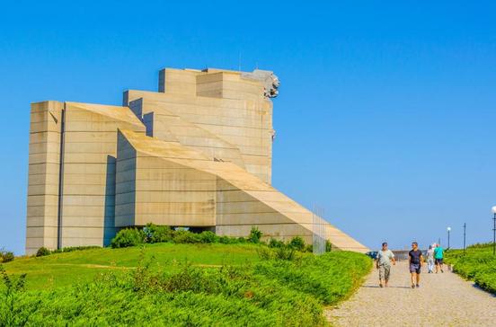 Sozialistische Geschichtsinszenierung: Bulgariens Vergangenheit als pompöse Statuengruppe und mit schöner Aussicht.