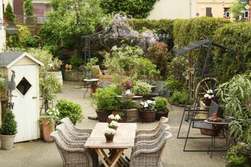Im Frühstücksraum genießen Sie den Blick auf den ruhigen Innenhof. Bei warmem Wetter frühstücken Sie im Freien.