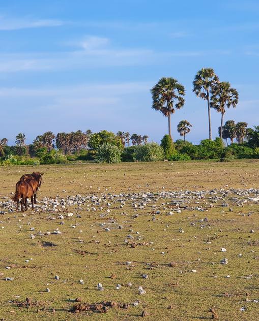 Etwa eine Stunde benötigt die Fähre zur 50 km² großen Insel Delft. Sie ist heiß und hat etwas sehr Karges. Palmyrapalmen strecken ihre Wedel gen Himmel und einige Ruinen erinnern an alte Zeiten, als die Holländer hier eine Festung hielten. Nicht selten galoppiert eine Herde Wildpferde über die staubigen Äcker. Es gibt noch einen ausladenden Banyanbaum und einen fetten Baobab zu sehen. Letzterer hat mindestens 500 Jahre auf dem Buckel und wurde möglicherweise von arabischen Seefahrer aus Afrika hergebracht. Am besten mietest du gleich beim Fähranleger ein Tuk Tuk – die örtlichen Fahrer kennen sich hier aus.
