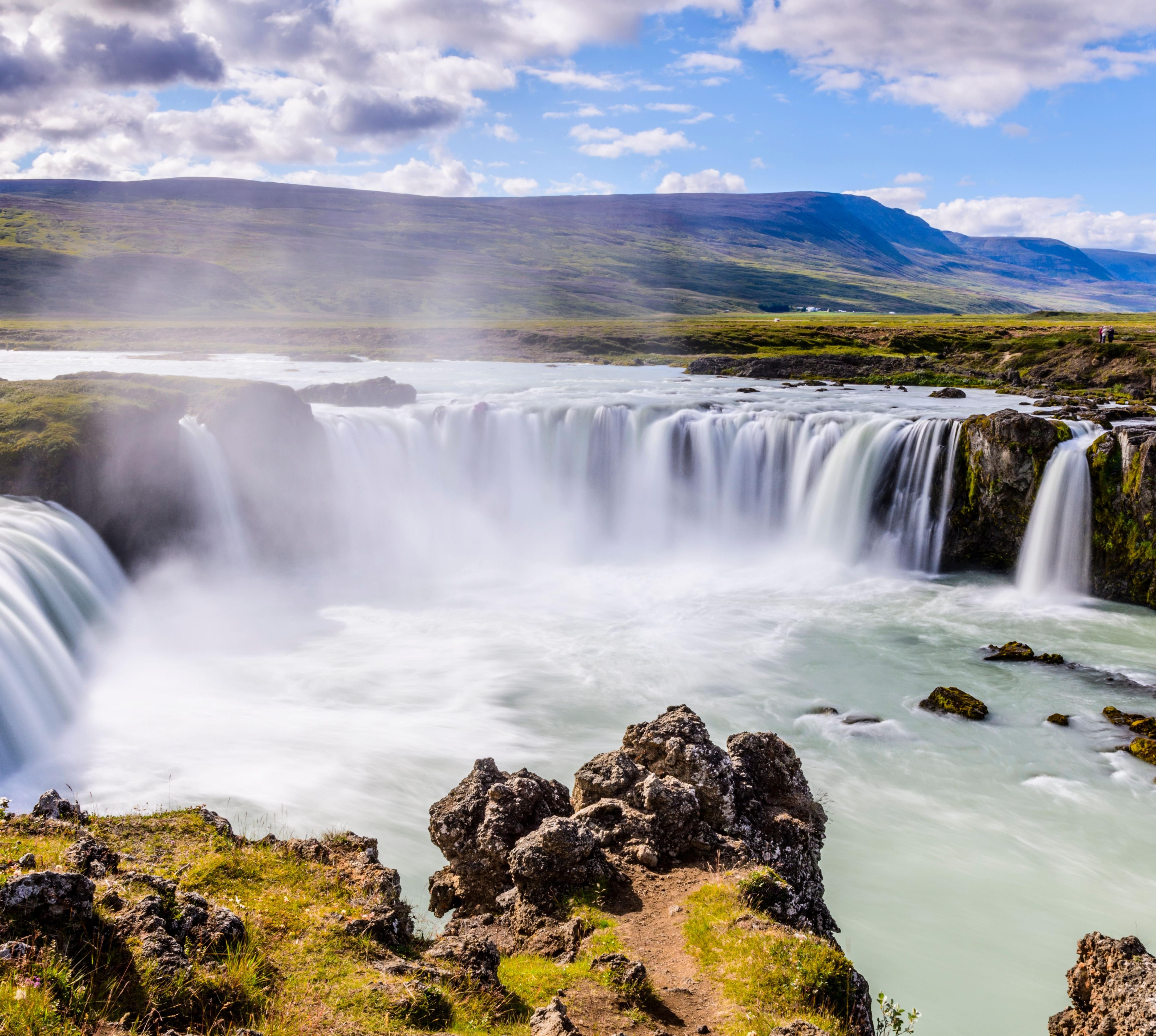 Dieser Wasserfall donnert in breiten Kaskaden hinab. Seinen Namen - auf Deutsch "Götterfall" - erhielt er im Jahr 1000, als man nach Annahme des Christentums alte Götterstatuen ins Wasser warf.