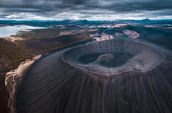 Der Krater Hverfjall hat einen Durchmesser von 1 km und ist 140 m hoch - und somit der größte Krater Islands.