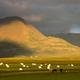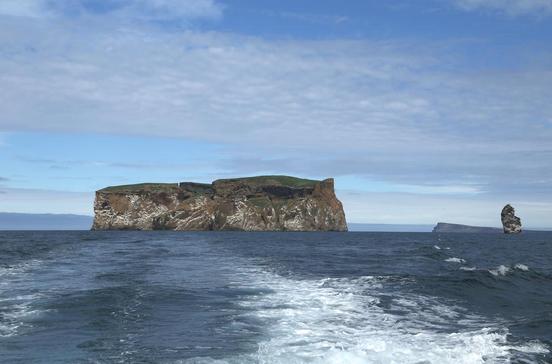 Mitten im Fjord Skagafjörður liegt die rund 200 m steil aufragende Tuffinsel Drangey. Noch heute nisten hier zahlreiche Vögel, z.B. Trottellummen, deren Bestände sich wieder gut erholt haben: In Zeiten des Hungers - v.a. im 18.und 19.Jh. - hatten die Menschen die Vögel gejagt und auch ihre Nester ausgeraubt. In einem Frühjahr sollen bis zu 200.000 Vögel getötet worden sein. Heute fährt man nur noch zur Vogelbeobachtung hierher. Die Insel ist auch Handlungsort einer Saga: Der Held Grettir soll über den Fjord schwimmend hierher geflohen sein.