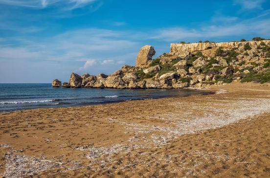 Der "Goldene Strand" liegt fast an der östlichen Spitze der Karpass-Halbinsel. Er ist über 3 km lang und mehrere 100 m breit und am Rand mit hohen, zum Teil spärlich bewachsenen Dünen besetzt. Außer in den Monaten Juli und August ist er weitgehend menschenleer, aber selbst im Hochsommer bleibt noch viel Platz für die Meeresschildkröten der Art Caretta caretta, die hier ihre Eier ablegen. Im ganzen weitläufigen Strandgebiet gibt es nur wenige Tavernen, die im Hochsommer rund um die Uhr geöffnet sind.