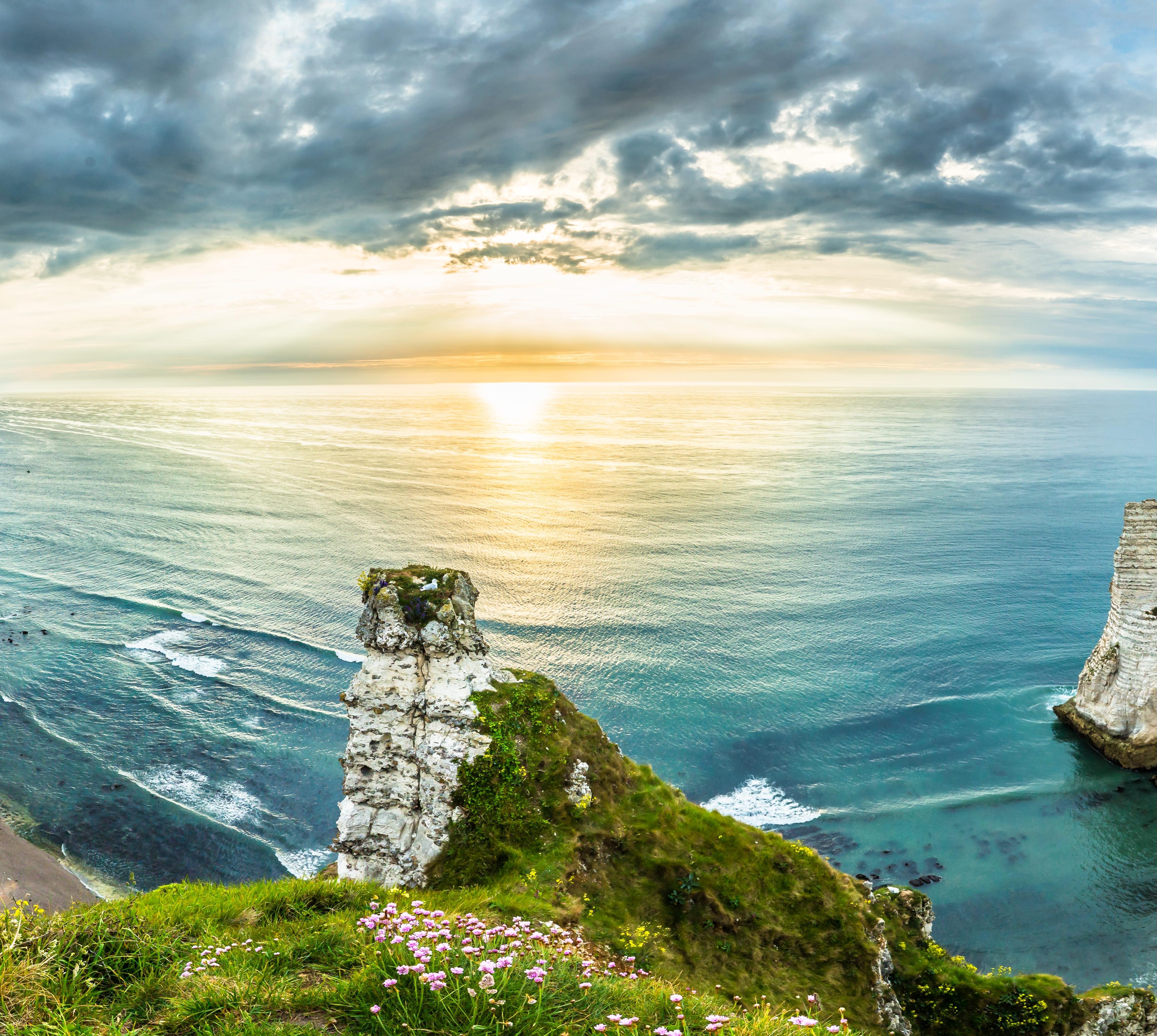 Die gut 600 km Küste könnten vielseitiger kaum sein: Im Nordosten stehen mächtige Kreideklippen an den Kiesstränden der Côte d’Albâtre, der Alabasterküste, darunter die 70 m hohe, fast nadelspitze Aiguille bei Étretat. Westlich folgen die mondäne Côte Fleurie (Blumenküste), die Côte de Nacre (Perlmuttküste) und die Plages de Débarquement, die Landungsstrände im Calvados mit Namen wie Utah Beach oder Omaha Beach. Auf der Halbinsel Cotentin findest du 100 km goldgelbe Sandstrände, hübsche Häfen und dramatische Steilküsten. Im grünen Hinterland erlebst du eine Landschaft voller Ruhe und Farbenpracht. Die Normandie hat ihren rustikalen Charme bewahrt und kommt ohne Bettenburgen aus. Aktivitäten beschränken sich nicht auf Wasser- und Strandsport. Ein dichtes Wanderwegenetz lockt Spaziergänger, verkehrsarme Straßen und Sträßchen sind ideal für Radfahrer. Auf größeren Flüssen finden sich Kanuund Kajakreviere. Sogar Felskletterer können sich hier austoben. Die Normandie lässt eben keinen Wunsch offen.