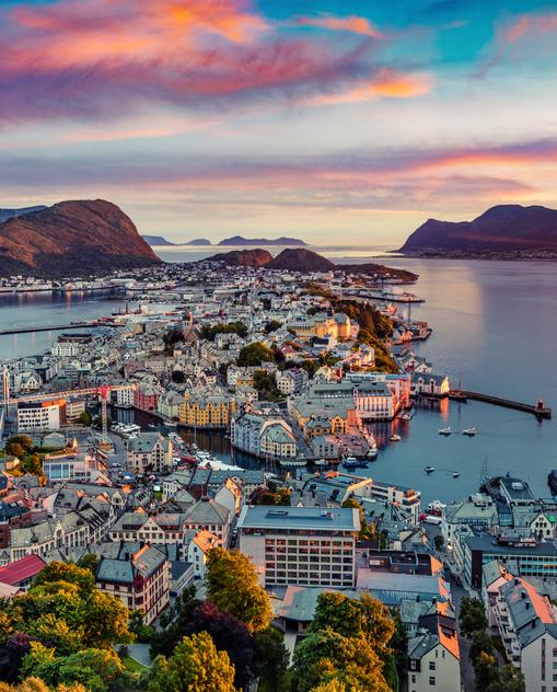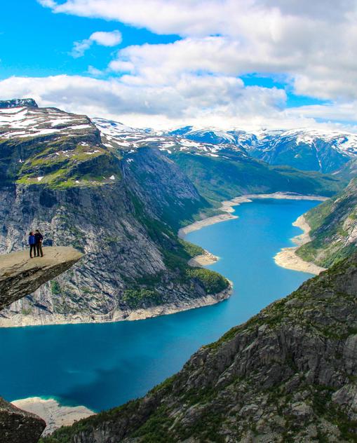 Norwegen erstreckt sich entlang der skandinavischen Halbinsel und ist geprägt von Fjorden, Gebirgen, Küsten und Hochebenen. Zu den bekanntesten Zielen zählen der Geirangerfjord, der Nordkap, die Lofoten, der Oslofjord sowie die Städte Oslo, Bergen und Trondheim. Auch die Atlantikstraße und der Preikestolen sind häufig besuchte Orte.