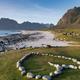 Doch auch ohne ein Brett unter den Füßen wird dich Unstad mit seinen bunt gestrichenen Holzhäusern begeistern. Der sichelförmige Strand, eingebettet in ein sattgrünes Tal und umrahmt von schroffen Felswänden, bietet eine Szenerie wie aus einem Film.